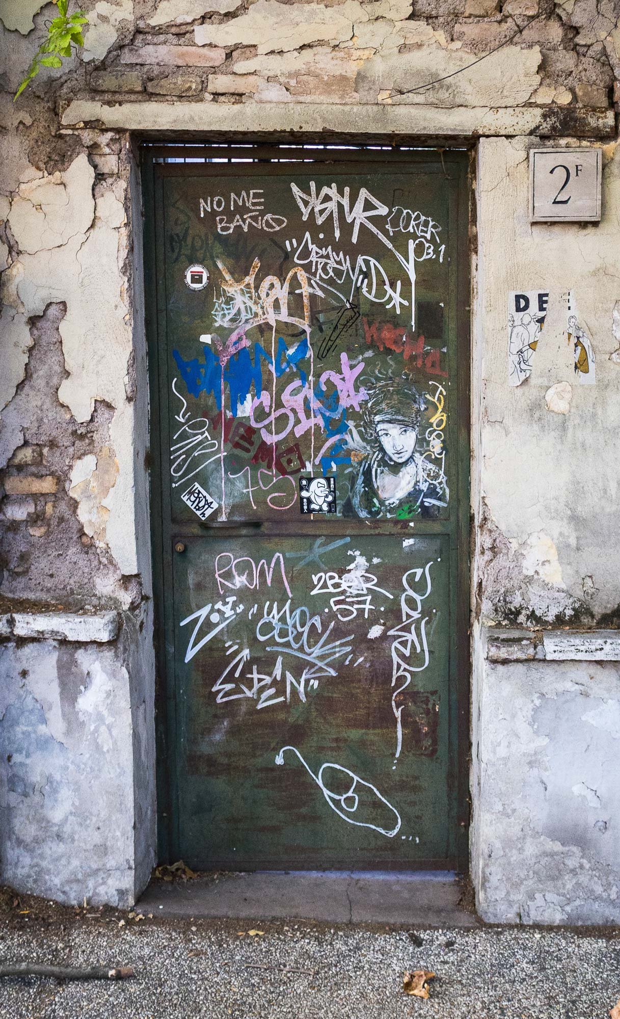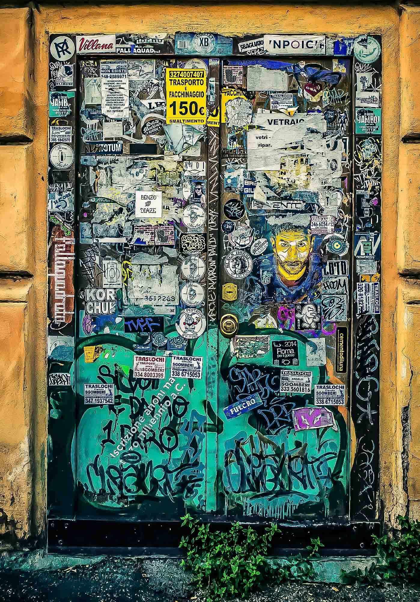 Gatherings is a project that focuses on stickers layered over graffiti and drawings covering both. These are dense palimpsests where voices collide. Each little mark insists on presence yet is immediately challenged, obscured, or echoed by the next. These surfaces become gatherings: chaotic and beautiful assemblies where a public forms, speaking over one another in fragments of image and text. Here, I photograph these restless accumulations, where Romans find themselves in conversation with themselves.